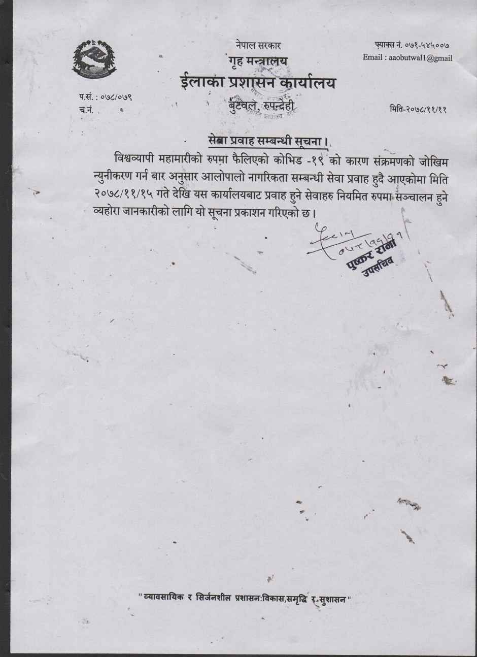 © सर्वाधिकार सुरक्षित ईलाका प्रशासन कार्यालय, बुटवल, रुपन्देही
