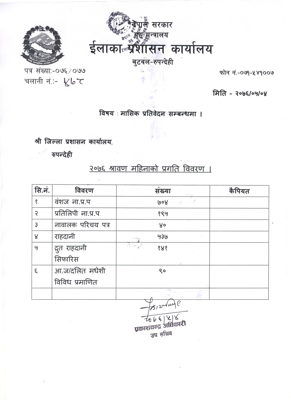 २०७६ श्रावण महिनाको प्रगति विवरण